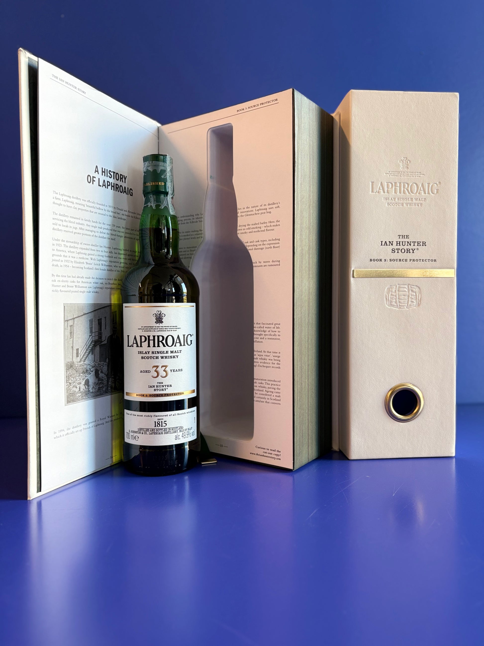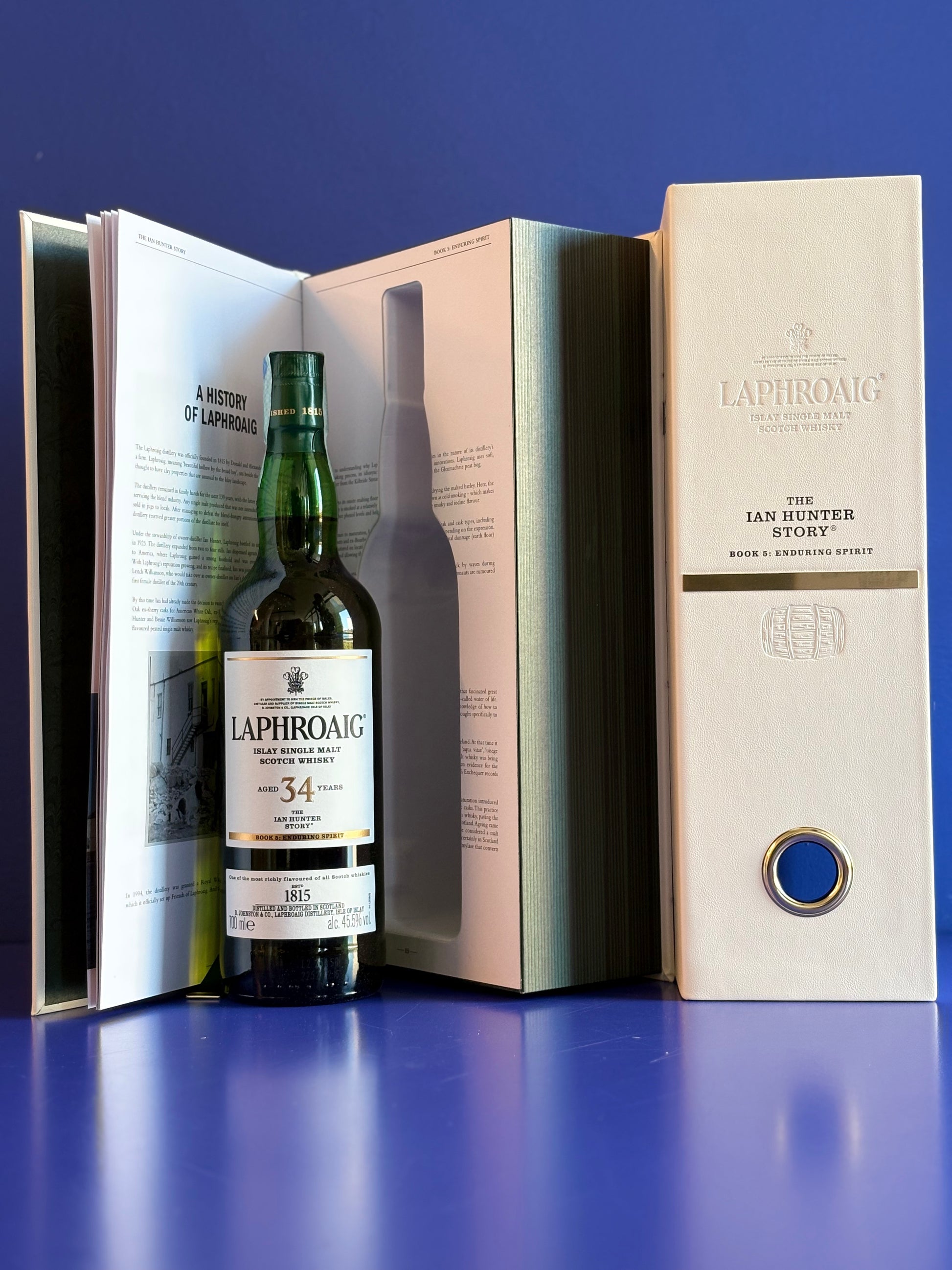 Single malt invecchiato 34 anni in botti di quercia bianca americana e affinato in botty ex Sherry Oloroso, prodotto con orzo maltato in casa nel pavimento di maltaggio della distilleria. Celebra Ian Hunter in qualità di Malt Master, onorando la sua eredità di fondatore dei piani di maltazione, ancora oggi di grande impatto sul gusto di Laphroaig.